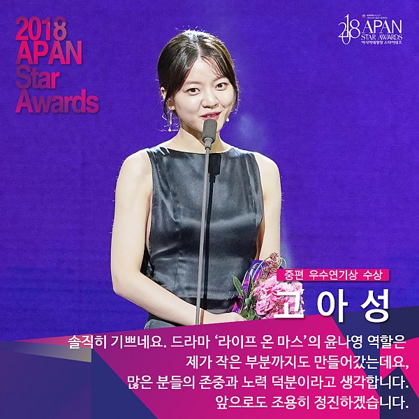 '2018 APAN Star Awards' 중편드라마 여자 우수연기상 고아성 페이지 정보 작성자 연매협 작성일18-10-26 14:07 조회11,498회 본문 ▲ 중편드라마 여자 우수연기상 고아성(OCN '라이프 온 마스') 이전글 다음글 목록